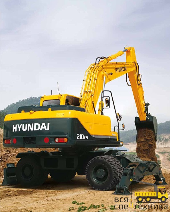 Экскаватор Хундай 210 колесный относится к новой, девятой, серии, в которой применены инновационные технологии, повысившие эффективность.